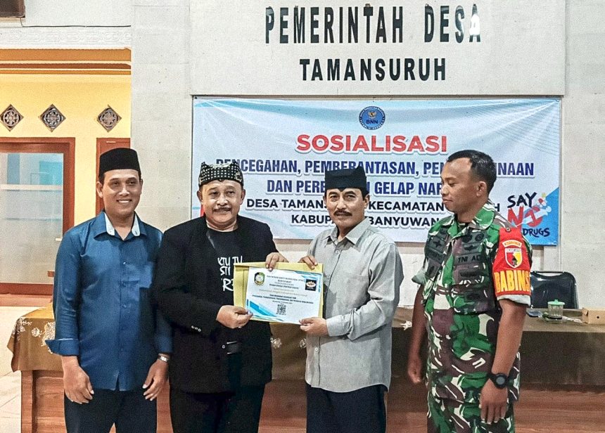 “Pemberian sertifikat penghargaan ini merupakan wujud nyata sinergitas untuk mewujudkan Desa Tamansuruh Bersinar, bersih dari narkoba,” kata Hakim.