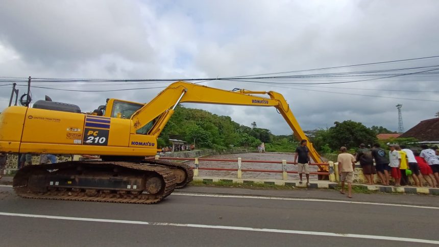 Penempatan alat berat dimaksudkan untuk mencegah terjadinya penyumbatan arus air oleh material seperti batang kayu dan bambu yang terbawa arus sungai, khususnya agar tidak menumpuk di bawah jembatan yang bisa memicu luapan air.