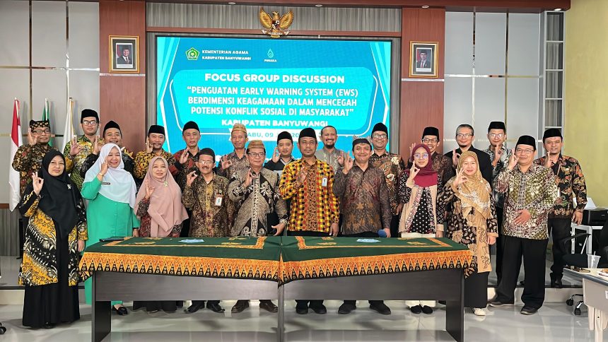 BANYUWANGI (AktualLine.com)–Kantor Kementerian Agama (Kemenag) Kabupaten Banyuwangi menyelenggarakan Focus Group Discussion (FGD) bertajuk “Penguatan Early Warning System (EWS) Berdimensi Keagamaan dalam Mencegah Potensi Konflik Sosial di Masyarakat”, Rabu (9/7/2025), bertempat di ruang pertemuan MAN 1 Banyuwangi.