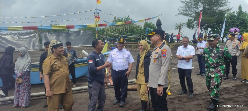 BANYUWANGI (AktualLine.com)–Bupati Banyuwangi, Ipuk Fiestiandani, bersama nelayan di Pesisir Desa Patoman, Kecamatan Blimbingsari, melakukan penenggelaman fish bank di perairan setempat, Senin (15/9/2025). Kegiatan ini bertujuan menjaga ekosistem laut sekaligus meningkatkan pendapatan nelayan.