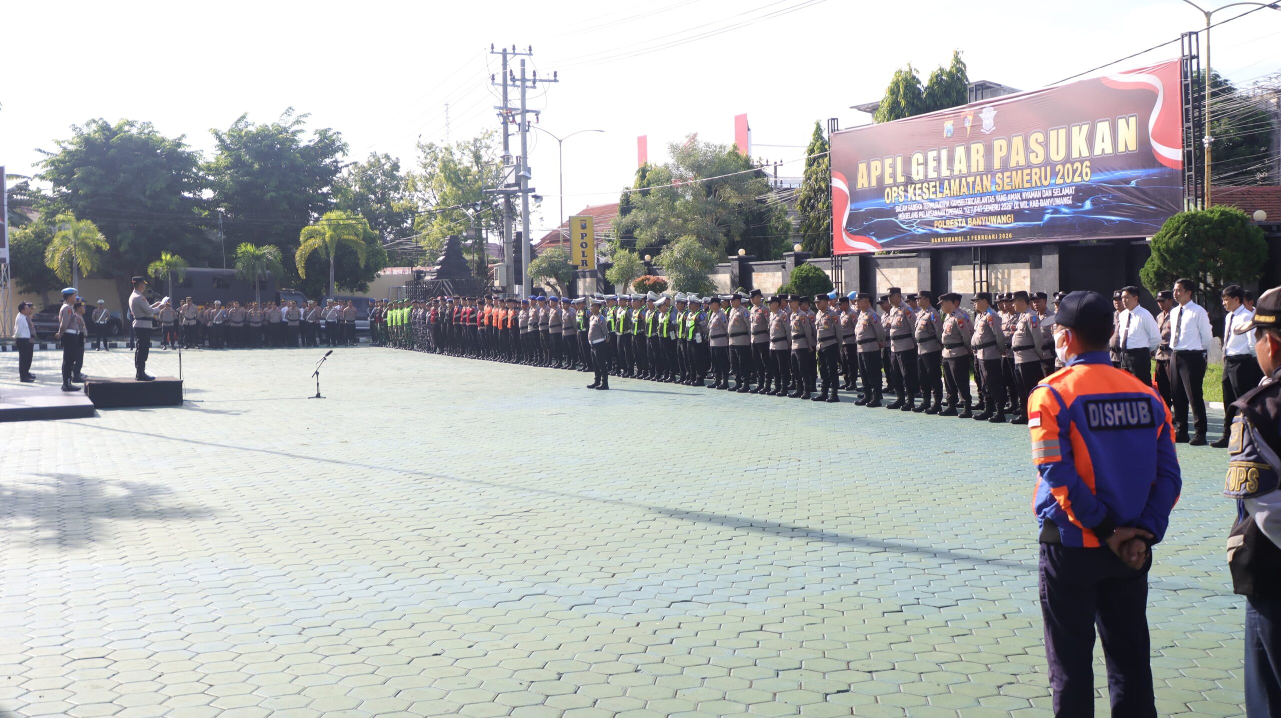 Apel gelar pasukan tersebut dipimpin Wakapolresta Banyuwangi AKBP Teguh Priyo Wasono, S.I.K., yang membacakan amanat Kapolda Jawa Timur Irjen Pol. Drs Nanang Avianto, M.Si. Apel diikuti personel gabungan TNI–Polri serta unsur stakeholder, mulai dari Dinas Perhubungan, Satpol PP, hingga instansi pendukung lainnya.