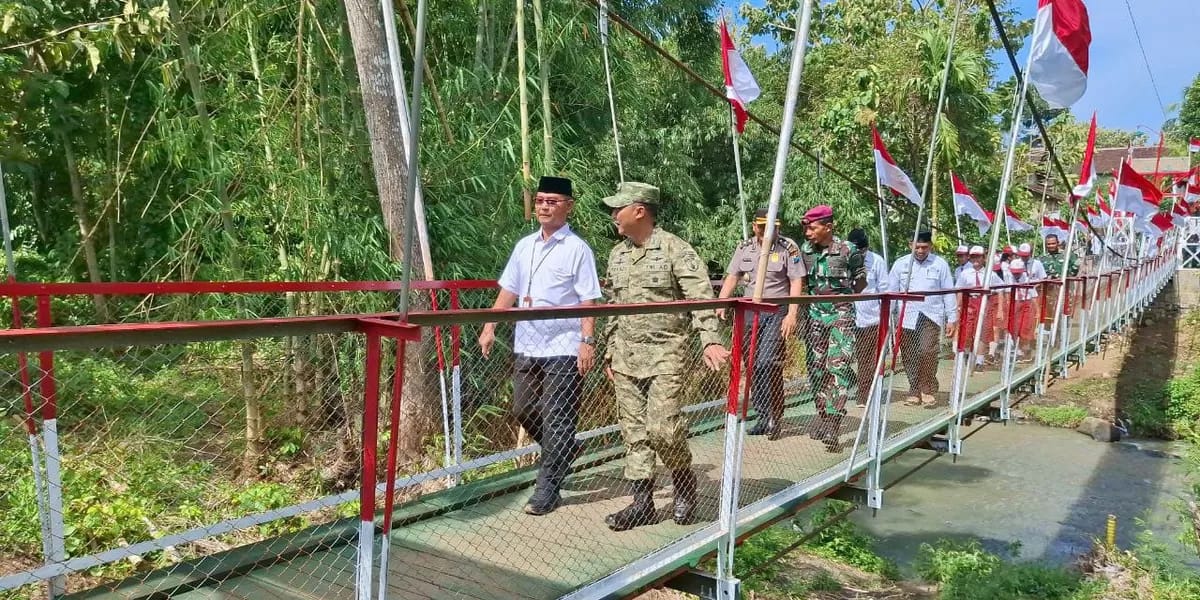 BANYUWANGI (AktualLine.com)- Jembatan Perintis Garuda di Desa Seneporejo, Kecamatan Siliragung, Banyuwangi, yang dibangun TNI AD resmi dioperasikan. Jembatan gantung ini mempermudah akses pendidikan, ekonomi, dan aktivitas warga yang sebelumnya harus memutar jauh bahkan menyeberangi sungai.