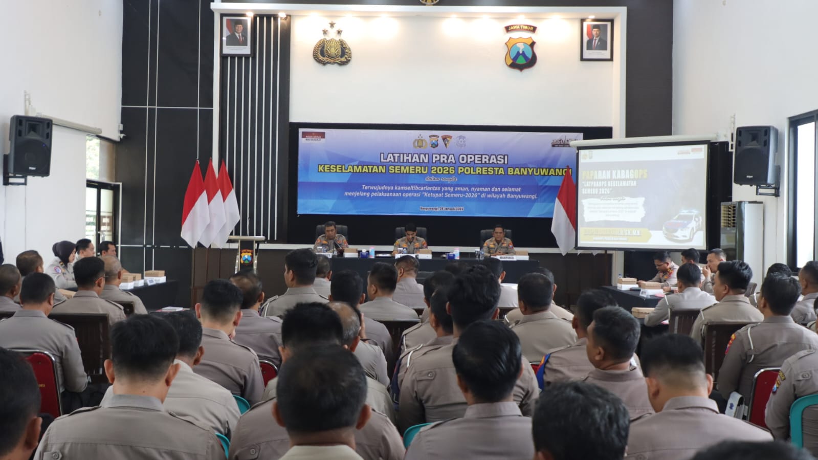 BANYUWANGI (AktualLine)–Menjelang pelaksanaan Operasi Keselamatan Semeru 2026, Polresta Banyuwangi melakukan pemantapan internal melalui Latihan Pra Operasi (Latpraops) yang digelar di Rupatama Mapolresta Banyuwangi, Rabu (28/01/2026). Kegiatan tersebut dipimpin langsung Kapolresta Banyuwangi Kombes Pol. Dr. Rofiq Ripto Himawan, S.I.K., S.H., M.H.